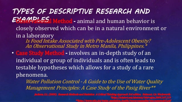 Descriptive research design from image.slidesharecdn.com Methodology refers to the overarching strategy and rationale of your research project. There are three main types of descriptive methods: This article research methodology example explains the research questions and size,research types,hypothes,collection of data in research methodology. Some subjects cannot be observed in any other way; For example, a social case study of an individual subject is a descriptive research design and allows observation without. What are the examples of descriptive research? Start studying descriptive research methodologies. Also known as statistical research, researchers look into frequency, average or other qualitative methods to understand a subject that is being studied.